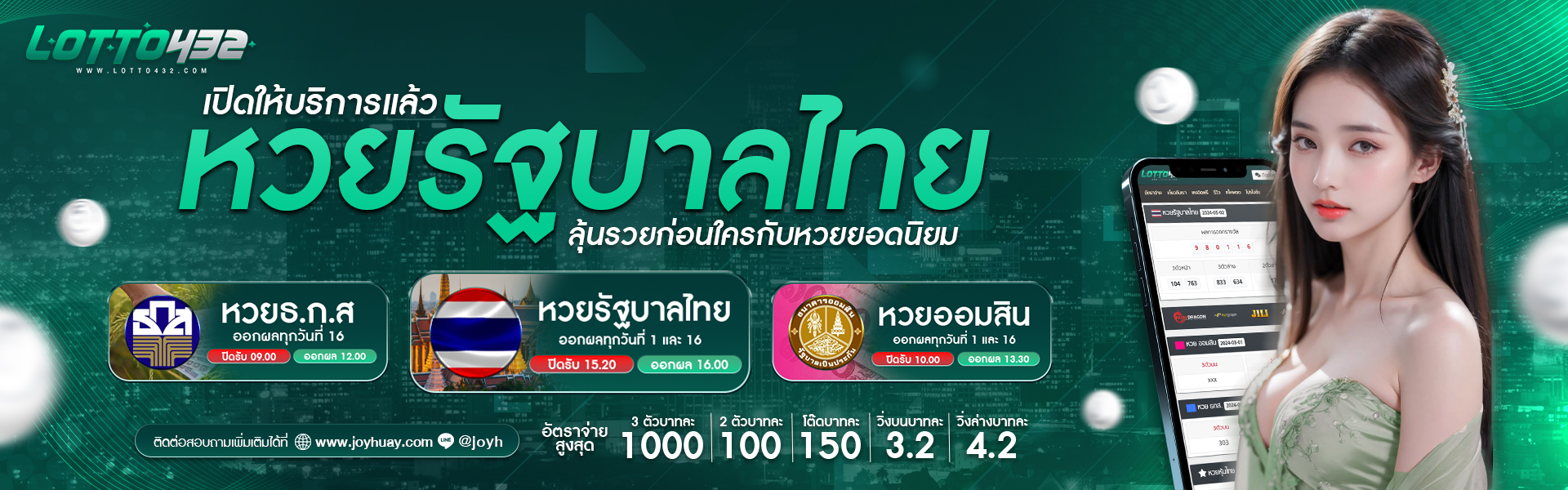 ล็อตโต้432 จัดรางวัลก้อนใหญ่รอท่านอยู่แล้ว ลุ้นจับเงินก้อนโตง่ายกว่าที่อื่น ด้วยอัตราจ่ายแบบคุ้มเสี่ยง 3 ตัวรับทันทีบาทละ 900 เริ่มต้นซื้อหวยบนแพลตฟอร์มของเราง่ายกว่าที่คิด เพราะกำเงินมาเพียง 10 บาทก็สามารถเข้าซื้อและใช้บริการของเราได้แล้ว การแทงเลข 3 ตัวนับเป็นหนึ่งในรูปแบบการเล่นหวยที่ได้รับความนิยมอย่างมาก เนื่องจากมีโอกาสชนะและรับรางวัลสูง สำหรับนักเสี่ยงโชคที่ต้องการรางวัลมหาโชค เลข 3 ตัวจึงเป็นตัวเลือกที่น่าสนใจเป็นอย่างยิ่ง ใครที่รักในความท้าทายเชื่อว่ารูปแบบนี้จะสามารถตอบโจทย์ท่านได้แน่นอน ซึ่งอัตราในการจ่ายทั้ง 2 หรือ 3 ตัว จะใช้เป็นมาตรฐานเดียวกันกับหวยทุก ๆ รูปแบบ ยกเว้นหวยหุ้นและหวยยี่กี ซึ่งอัตราจ่ายเลข 2 หลัก จะอยู่ที่บาทละ 92 และเลข 3 หลัก จะอยู่ที่บาทละ 850 นอกนั้นมาตรฐานการจ่ายเทียบเท่ากันทุกประเภท